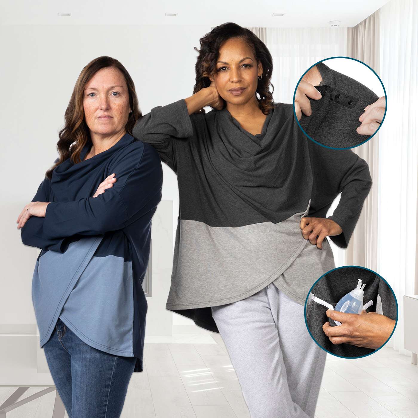 KickIt Recovery Wear is an idea born from co-founder Cindy Trice while she was undergoing chemotherapy treatments for cervical cancer. A dear friend gave her a cute pair of pajamas to wear while hospitalized. From the minute she put these pajamas on, Cindy felt put together and dressed as she pushed her IV pole in laps around the nurses’ station and welcomed visitors. In essence, she felt dignified and a little “normal” in a world where absolutely nothing felt normal.